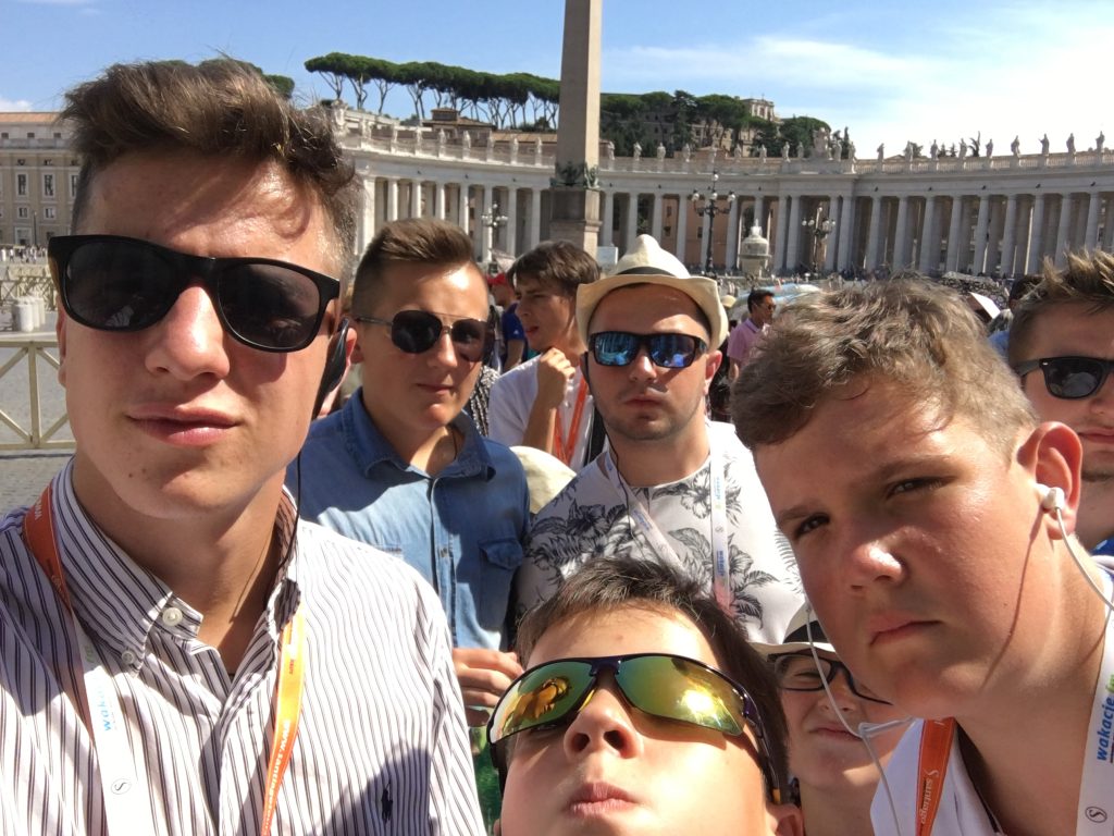 Przyszedł upragniony dzień naszego wyjazdu, nasza podróż rozpoczęła się na lotnisku w Krakowie lecieliśmy z przesiadką we Frankfurcie. Powiedzieć, że towarzyszyły nam wyjątkowe emocje – to nic nie powiedzieć. Byliśmy szalenie podekscytowani, że wyjazd nie tylko doszedł do skutku, ale już jesteśmy w Rzymie. Wszystko mieliśmy zorganizowane w najdrobniejszych szczegółach, przelot samolotem z Krakowa do Rzymu i powrót z Rzymu do Krakowa. Na lotnisku czekał na nas autokar, który zawiózł nas do naszego apartamentu i tu niespodzianka mieszkaliśmy obok Watykanu, od strony Auli Pawła VI.
