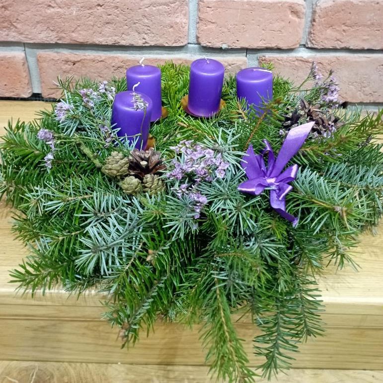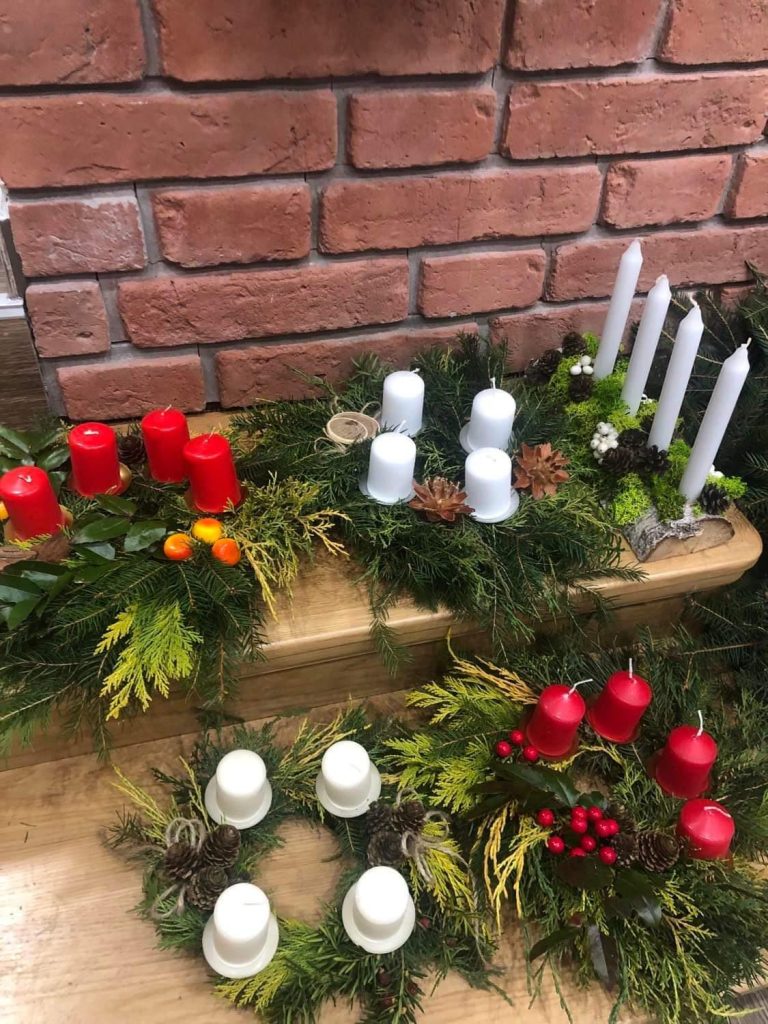 W tym roku nie wystawiliśmy straganu na jarmarku adwentowym z ozdobami domowymi, lecz postanowiliśmy sprzedawać ręcznie robione wieńce adwentowe. Sprzedaż odbywała się w przedsionku naszego kościoła i każdy mógł zakupić wieniec. Były cztery rodzaje i każdy się od siebie różnił kolorem i wyglądem. W przygotowaniu tych wieńców pomogli nam nasi członkowie rodziny.