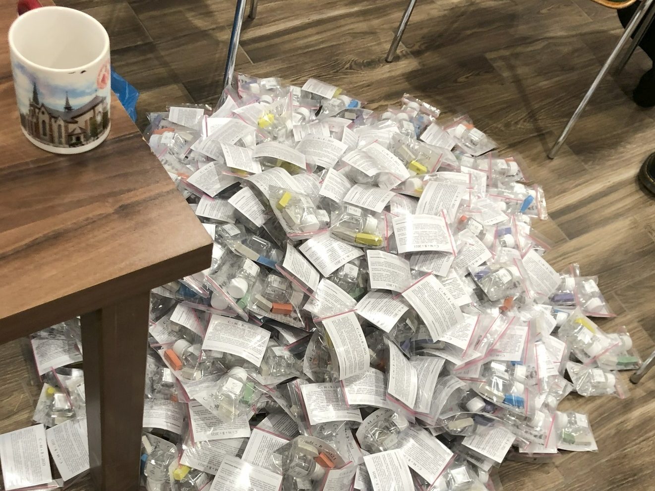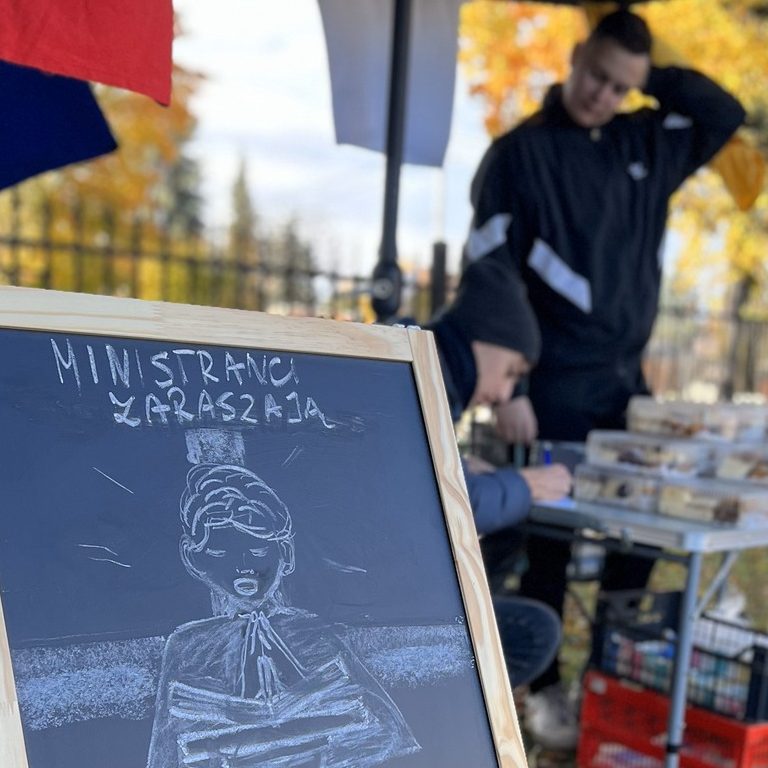 Wodę święconą sprzedawaliśmy podczas pandemii wraz z modlitwą, kropidłem i kredą w zestawie. Codziennie odbywała się msza święta, po której można było zakupić ten oto zestaw i pobłogosławić swój dom własnoręcznie. Wodę święconą sprzedajemy również w Wielką Sobotę po zakończonej liturgii.